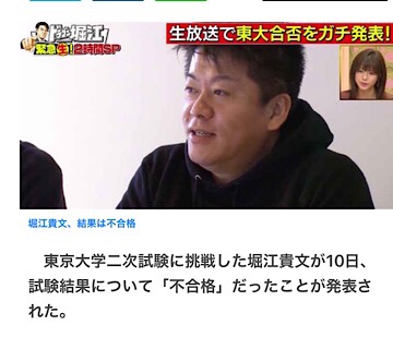『一カ月あれば東大に合格出来る。』と豪語していたホリエモンでしたが、結果は惨敗。 やはりそんなに甘くないね